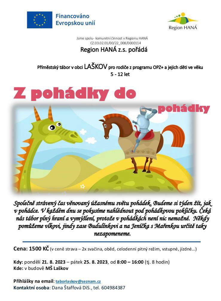 Tábor Z pohádky do pohádky, určený dětem ve věku 5-12 let, který se koná v termínu od 21.8.-25.8.2023.