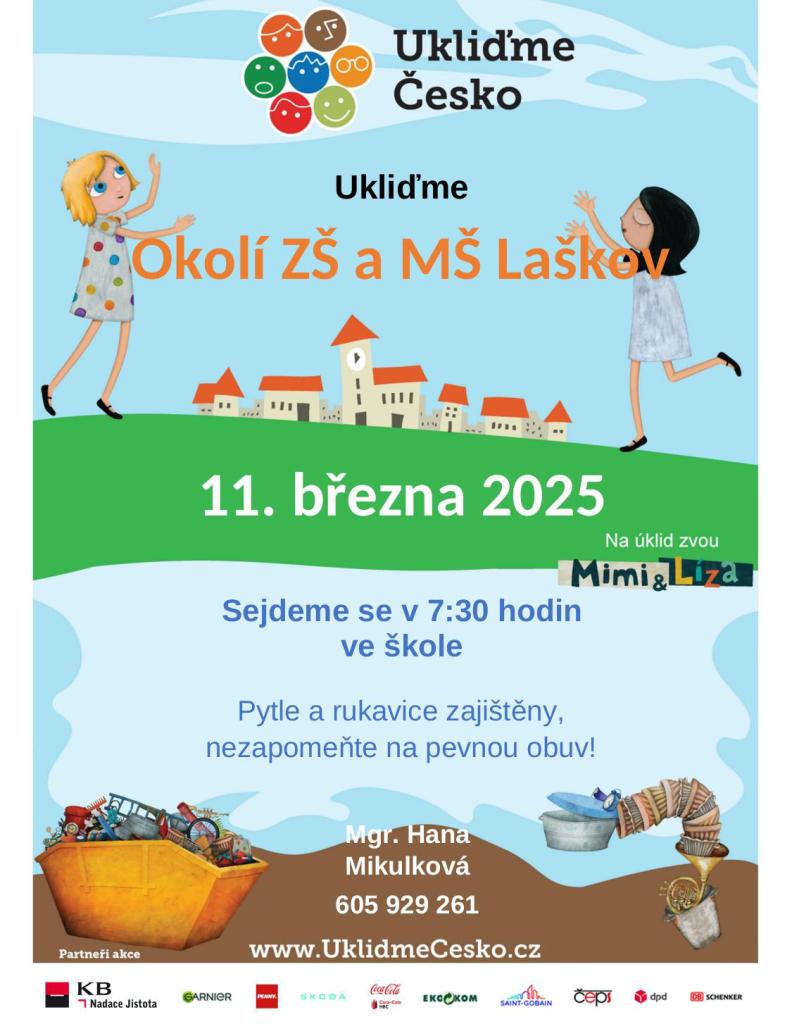 Děti společně s učiteli vyrazí do okolí školy, parku či jiných veřejných prostor a pomohou s úklidem odpadků. Akce proběhne během dopoledne a bude přizpůsobena věku dětí. Těšíme se na společně strávený čas v přírodě a věříme, že si děti odnesou nejen dobrý pocit, ale i důležité zkušenosti.