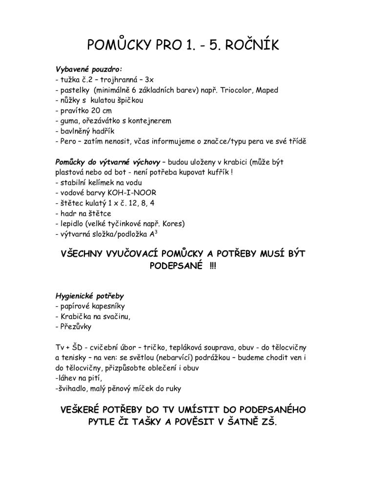 Seznam pomůcek pro 1. - 5. ročník 1