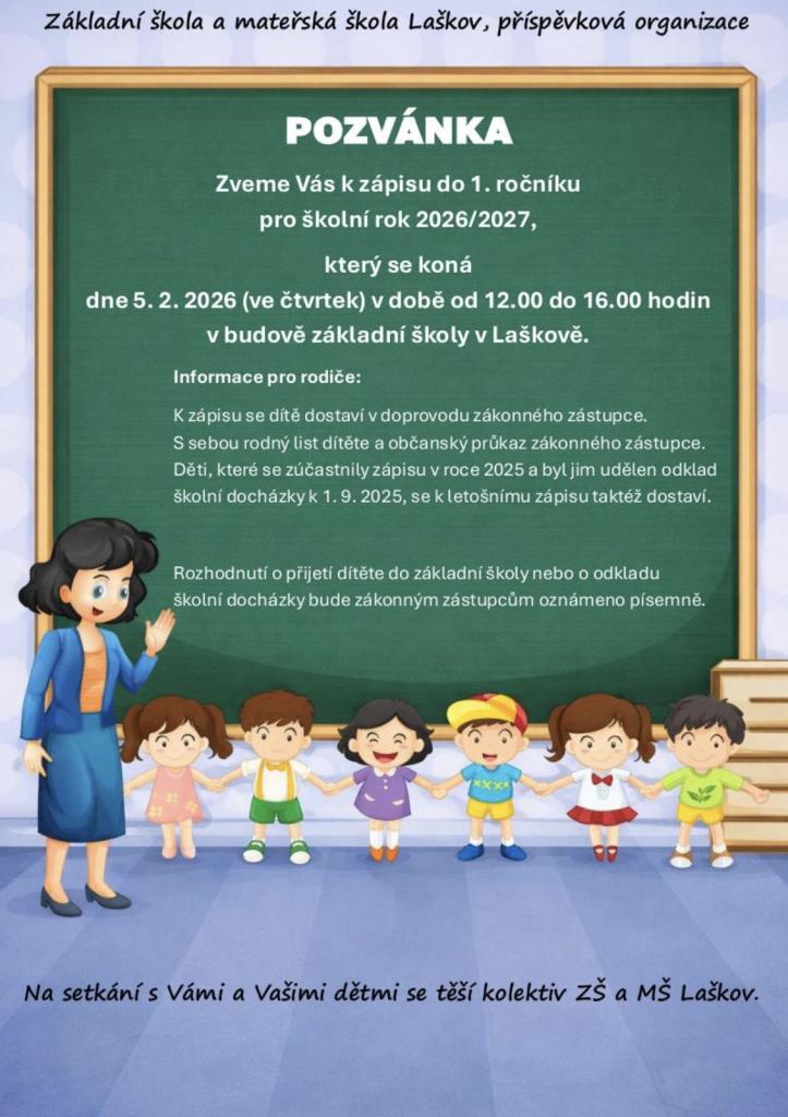 Srdečně zveme budoucí prvňáčky a jejich rodiče k zápisu do 1. třídy.
